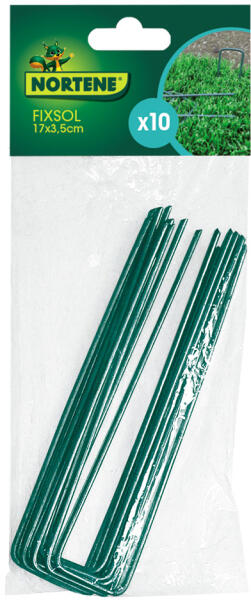 Kisméretű fémkapocs műfüvek lerögzítéshez. Méret: 17 x 3,5 cm, zöld színű.